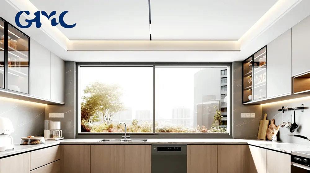 Guohua Construction은 주방용으로 널리 사용되는 일체형 벤딩 플루오로카본 블랙 중공 알루미늄 스트립, 알루미늄 프로파일 두께: 2.0mm 및 유명 브랜드 "XinYi"의 강화 유리로 구성된 우수한 창을 제공할 수 있습니다. 고품질 국산으로 자체 개발한 측면자동잠금장치와 산화에 의한 알루미늄 Profile의 전문적인 표면처리입니다.